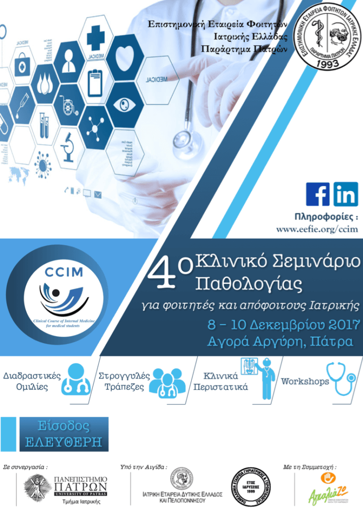 Το Κλινικό Σεμινάριο Παθολογίας – CCIM (Clinical Course of Internal Medicine) αποτελεί τη μεγαλύτερη εκδήλωση του Παραρτήματος Πατρών της Επιστημονικής εταιρείας Φοιτητών Ιατρικής Ελλάδας-ΕΕΦΙΕ. Το πρώτο σεμινάριο πραγματοποιήθηκε στις 27-28 Σεπτεμβρίου 2014, στο συνεδριακό χώρο της Αγοράς Αργύρη στην Πάτρα και έγινε θεσμός συμπληρώνοντας πέντε συναπτά έτη που πραγματοποιείται ανελλιπώς.